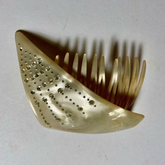 Vintage, Lot of 4 Celluloid Ivory Backcombs or Haircombs with Rhinestones