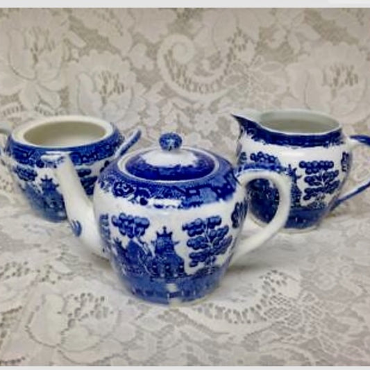 Antique Allerton Ltd., , England, 17pc Blue Willow Demitasse Tea Set