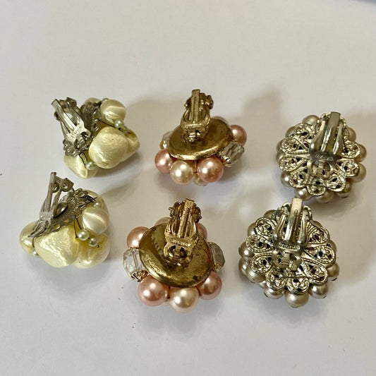 Vintage, Japan, Silver Tone, 3 Pairs of Haskell Type Clip Earrings (E0323)
