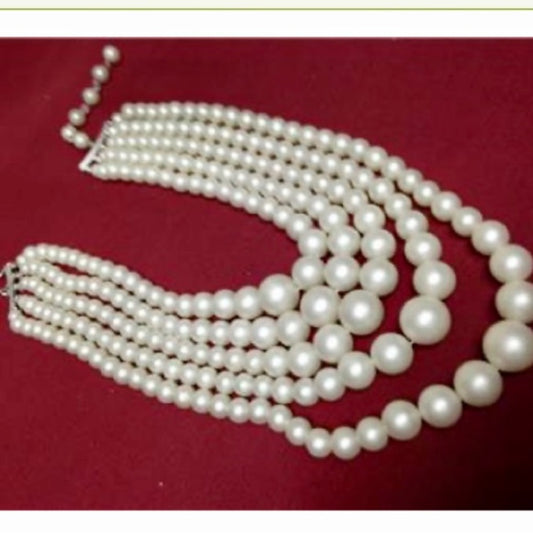 Vintage, 5 Layers, Graduated Faux Pearls, 17in Choker- Necklace