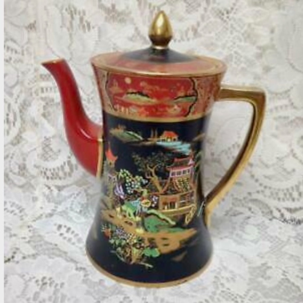 Vintage, Rare, Carlton Ware England, Polychrome, Gaudy Blue Willow, 11pc Demitasse Tea Set (8Z0922)