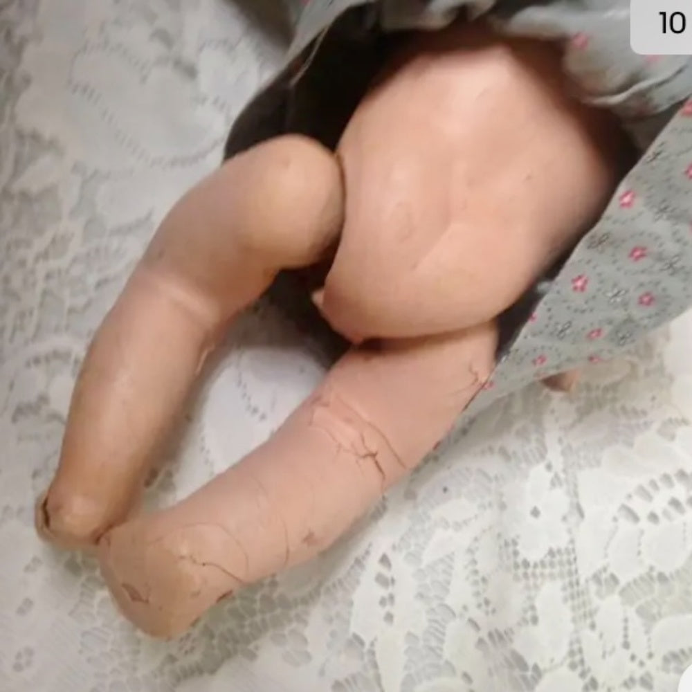 This is a beautiful 12-inch doll made of composition with molded hair and painted face. It has lots of issues with normal age wear common to composition doll such as chips, cracks, soiling and discoloration as shown in photos. It is not marked, but this is known to be made popularly during the 1930s. The last photo shows other composition dolls being offered for sale separately.