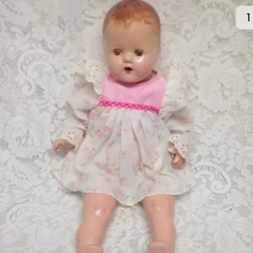 1930s 20-inch Composition Doll with White and Pink Dress