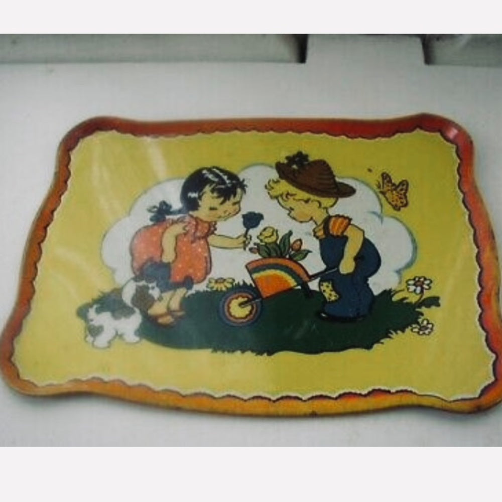 1940s #173 Boy-Girl in Garden, Ohio Art 14-pc Child’s Tin Tea Set