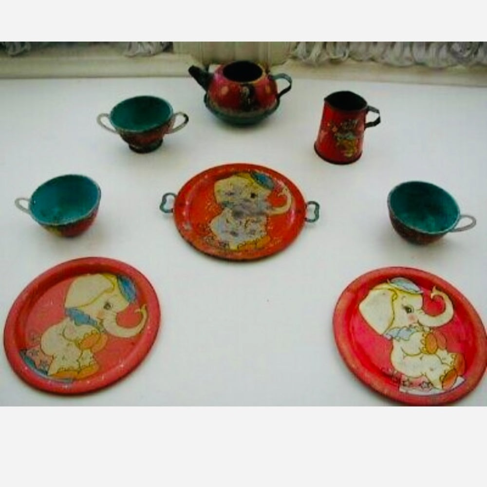 1948 Ohio Art #158, Circus 8-pc Child’s Tin Tea Set
