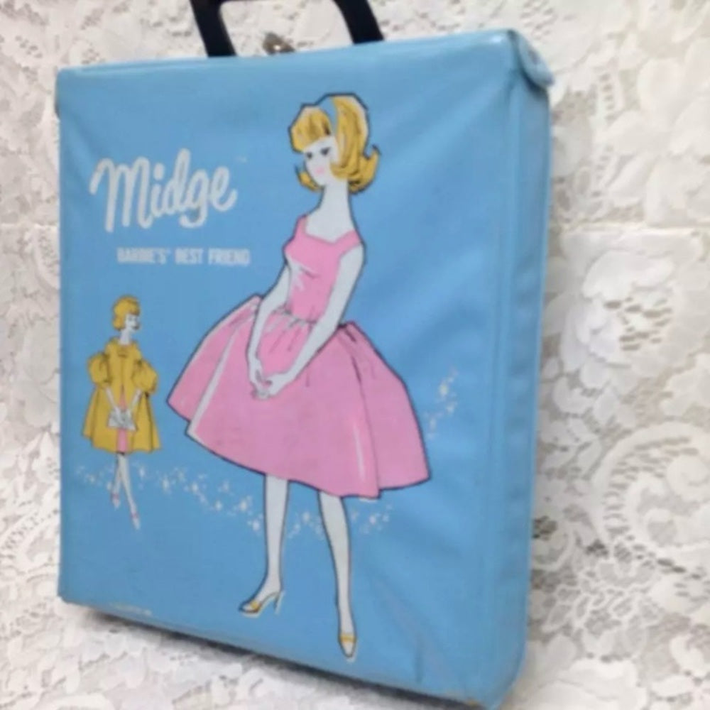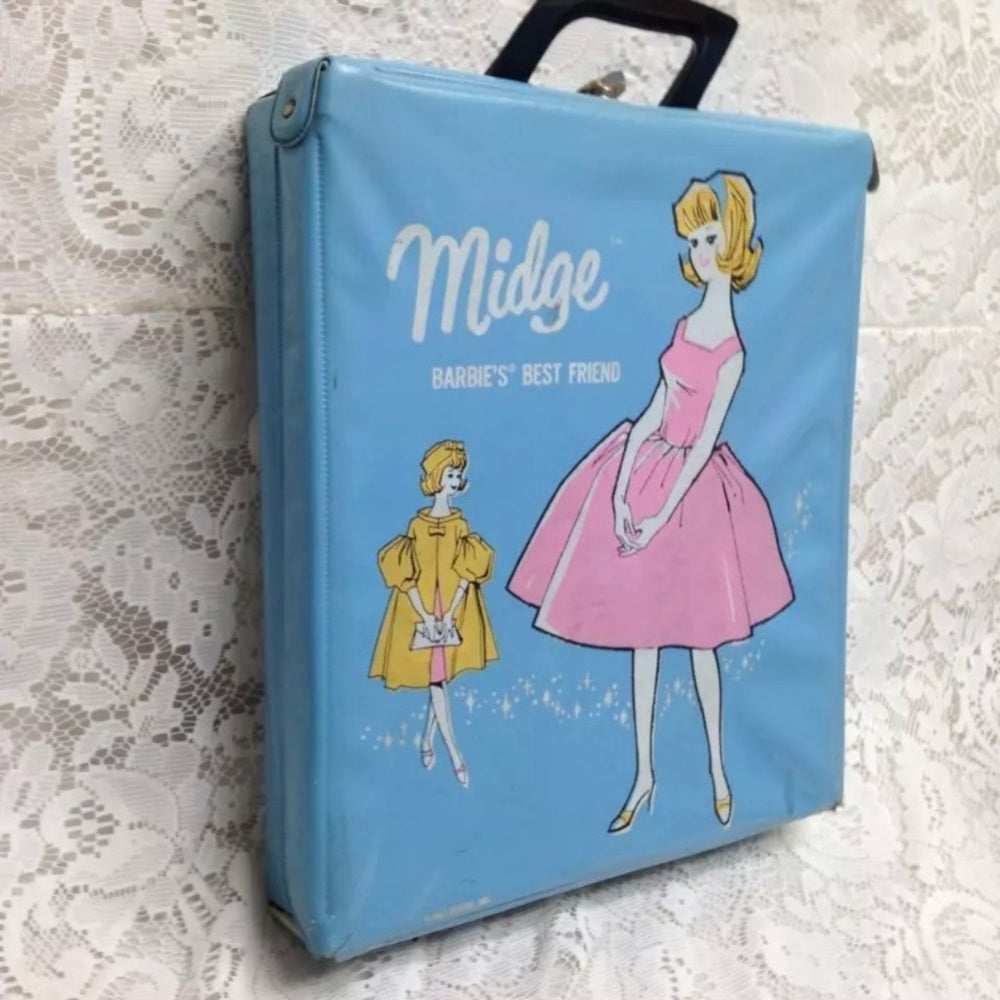 1963 Vintage Blue Vinyl Midge - Barbies Best Friend Carrying Case with Doll
