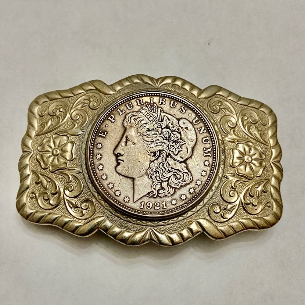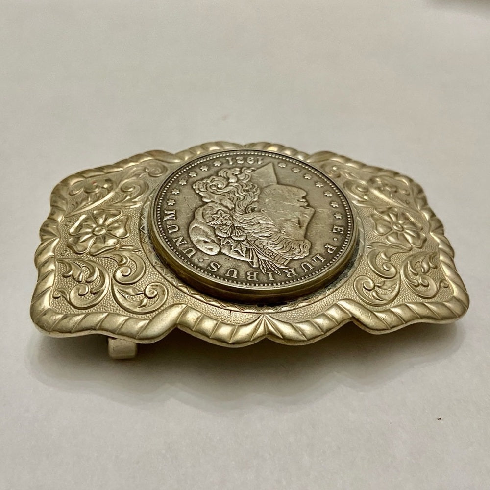 Antique 1921 Silver Morgan Dollar Coin Buckle 3.25in x 2.25in
