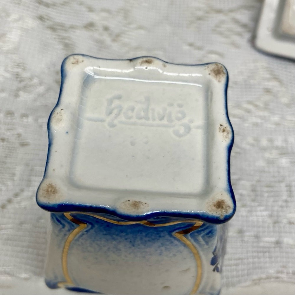 Antique 2-pc Flow Blue Willow Spice or Coffee and Tea Jars with 4.5in x 2.5in sq (2O1025)