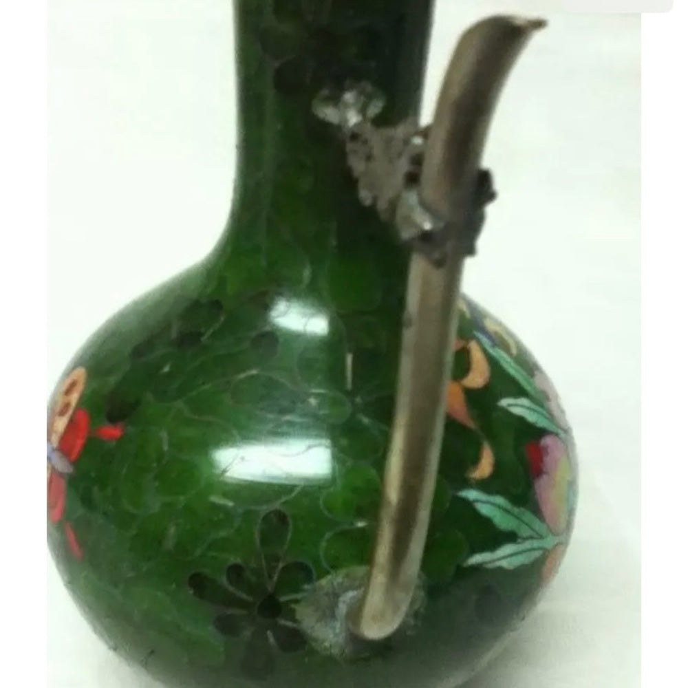 Antique, Beautiful, 7in x 5in Pink Floral Green Cloissone’ Teapot (J0523)