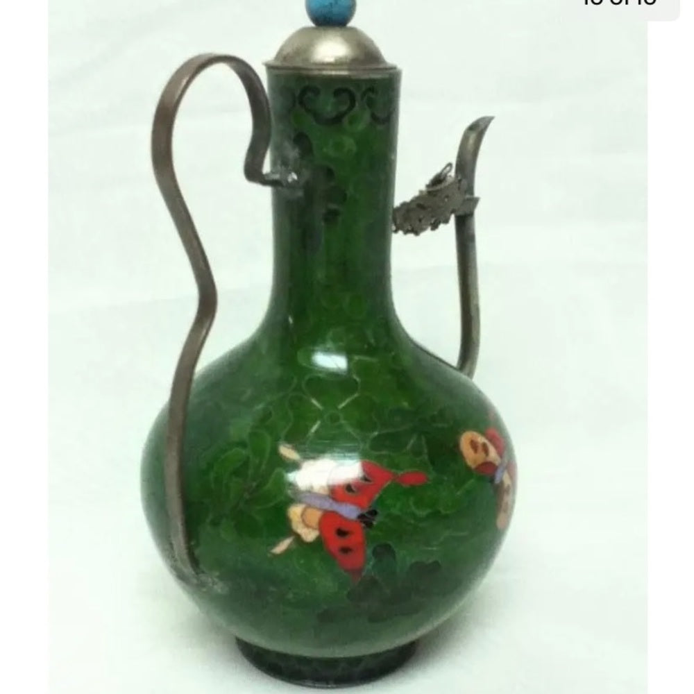 Antique, Beautiful, 7in x 5in Pink Floral Green Cloissone’ Teapot