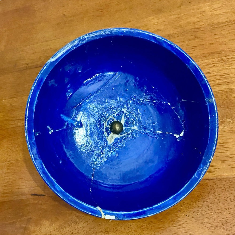 Antique Cloisonné Style Large, Heavy Temple Jar or Urn with Fish Metal Finial (3Z0524)