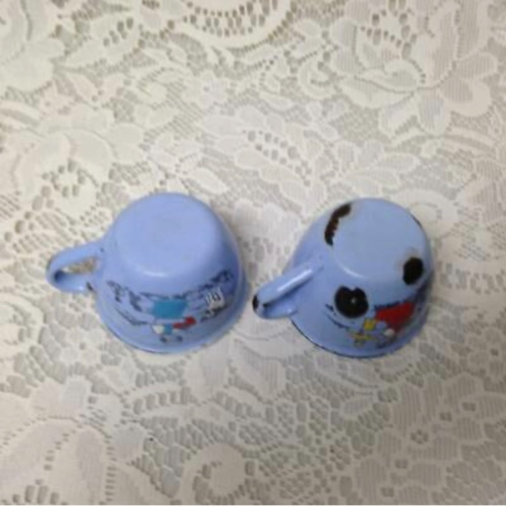 This is a beautiful 6-pc childs Tea Set, made of sky blue enamelware on metal. The set is in good vintage condition with minimal age wear such as enamel loss and dents as shown in photos. Package weight is about 2 pounds. This set includes the following:
