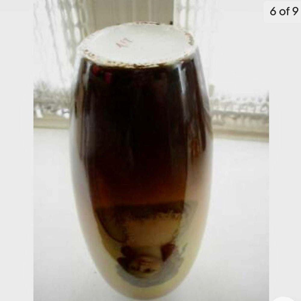 This is a beautiful, large, flower vase, probably made of porcelain with handpainted portrait of a beautiful lady, probably a royalty. It measures 12.5 inches high and 4.5 inches in diameter. It has heavy crazing and a repaired top rim but overall it is good vintage condition as shown in photos. It is marked: Royal 417.