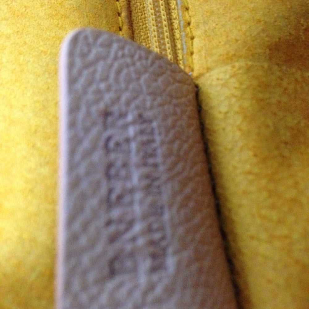This is a beautiful, pre-owned handbag or shoulder made of pink grained leather. It measures 14 inches long, 7inches wide and 3 inches deep. One handle shows repair but overall it is in good condition with minimal wear and may have scratches, discoloration and soiling as shown in photos. It is marked: Bvlgari with code BNEBER.