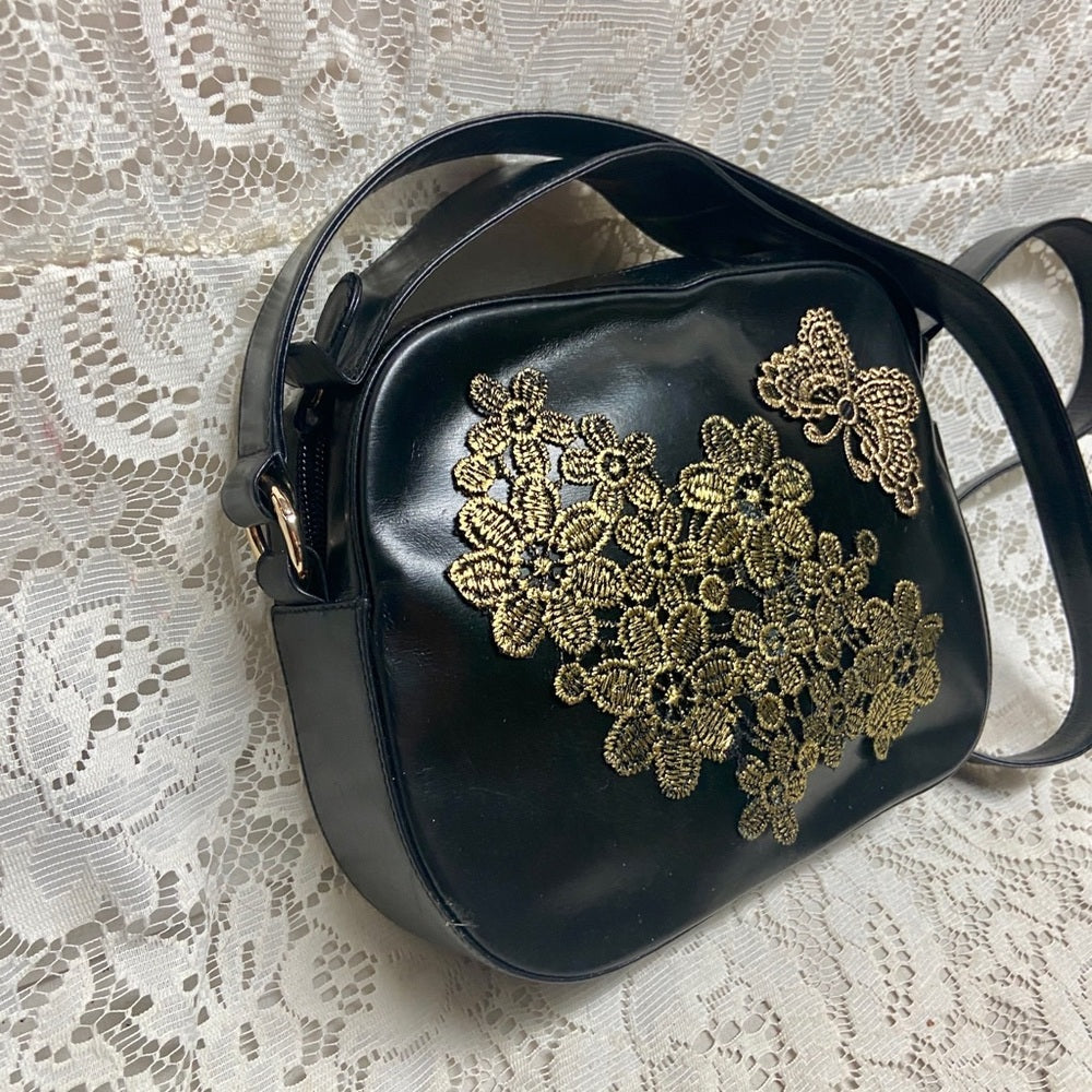 This is a pre-owned multi function handbag wristlet or crossbody, made of black Leather. This will be good enough for your, glasses, cell phone and wallet. It measures about 9 inches long, 7 inches wide and about 3 inches deep and comes with 46-inch shoulder-cross body strap. The gilded floral decoration is not original and was handcrafted by the original owner. It has discoloration, scratches and inner lining is rough but not sticky. Overall it is in good condition as shown in photos. It is marked: Bally Made in Italy.