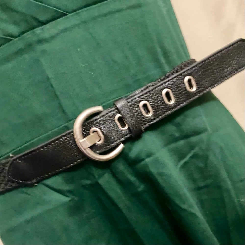 This is a beautiful, pre-owned green dress and it comes with a black leather belt. It is in very good vintage condition as shown in photos. Actual measurements follows: