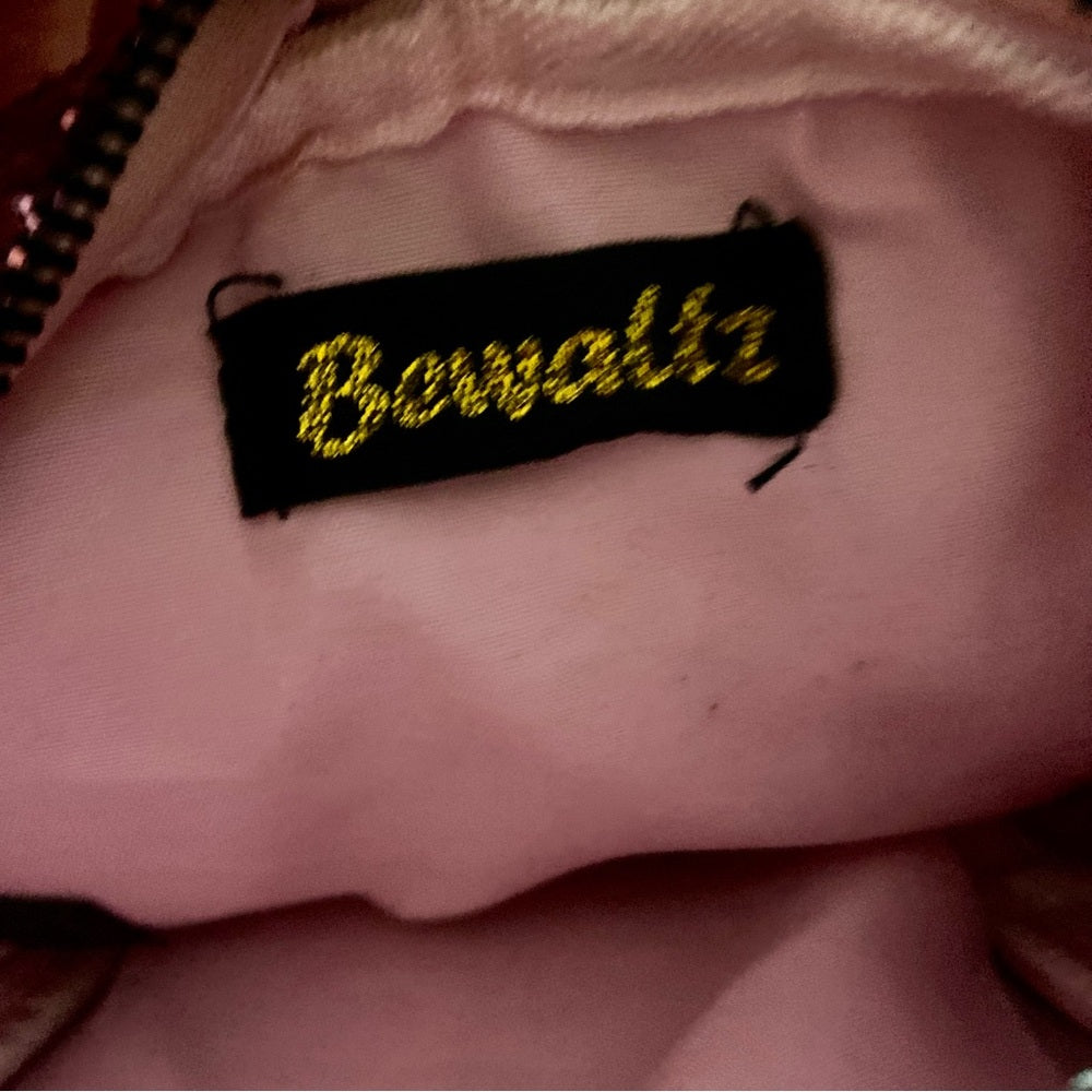This is a beautiful evening Crossbody Bag decorated with pink glitters. It measures 6 inches long, 5 inches high and 1.5 inches wide. It comes with a 48-in silver chain strap. It is in very good condition with minimal wear as shown in photos. Please super size photos for condition details.
