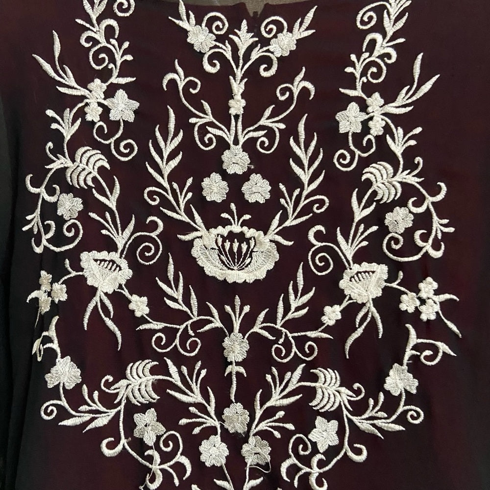 This is a beautiful, pre-owned sheer shawl or Cardigan with white floral embroidery. It is in very good condition as shown in photos. The actual measurements follows: