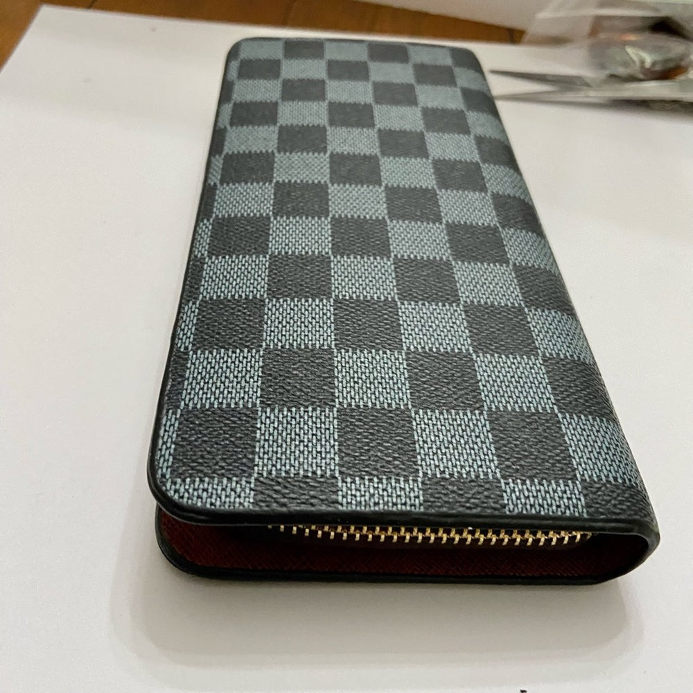 Blue and Black Plaid Faux Leather Zippy Long Wallet (T0623)