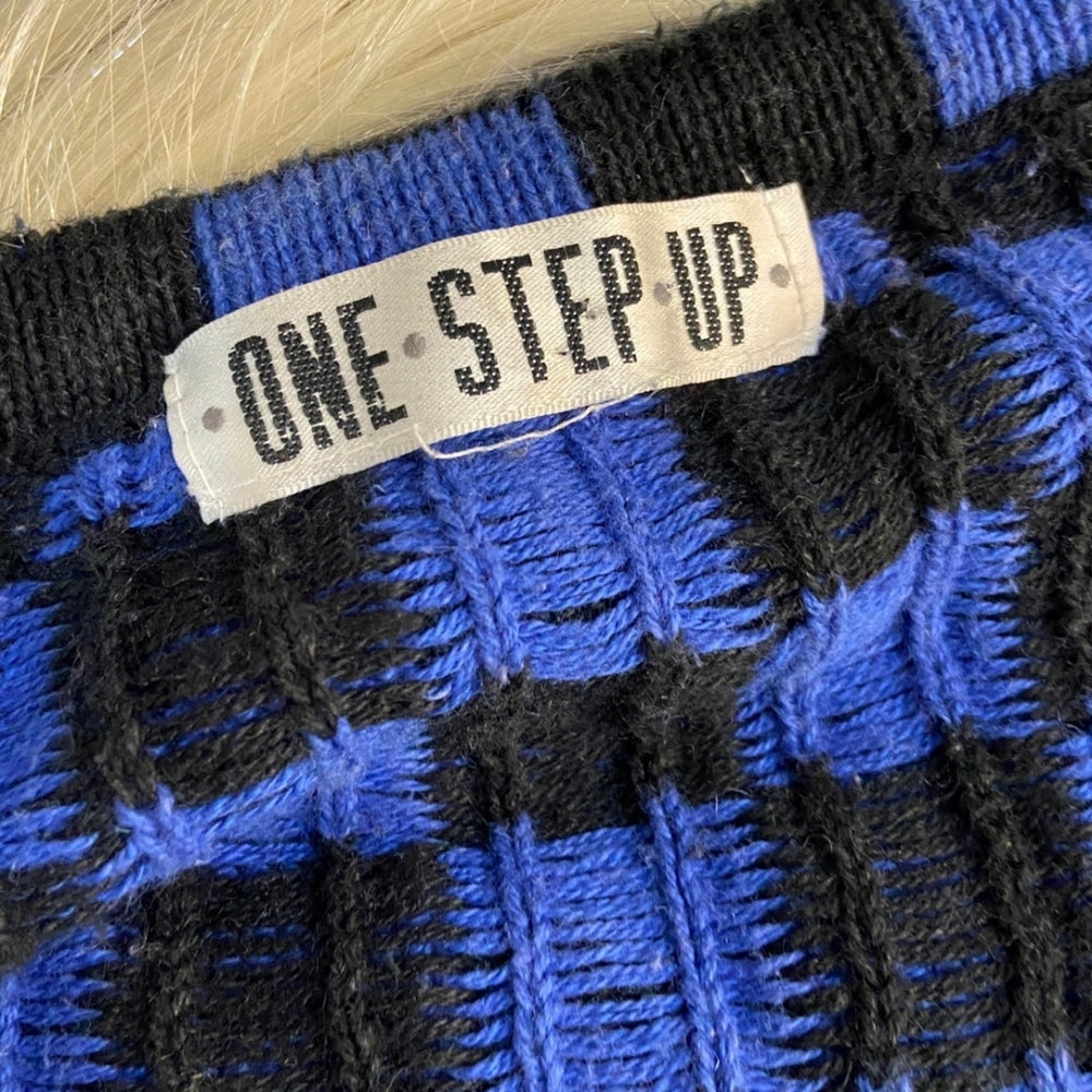 A) One Step Up, Plaid Blue Sweater - Size Free