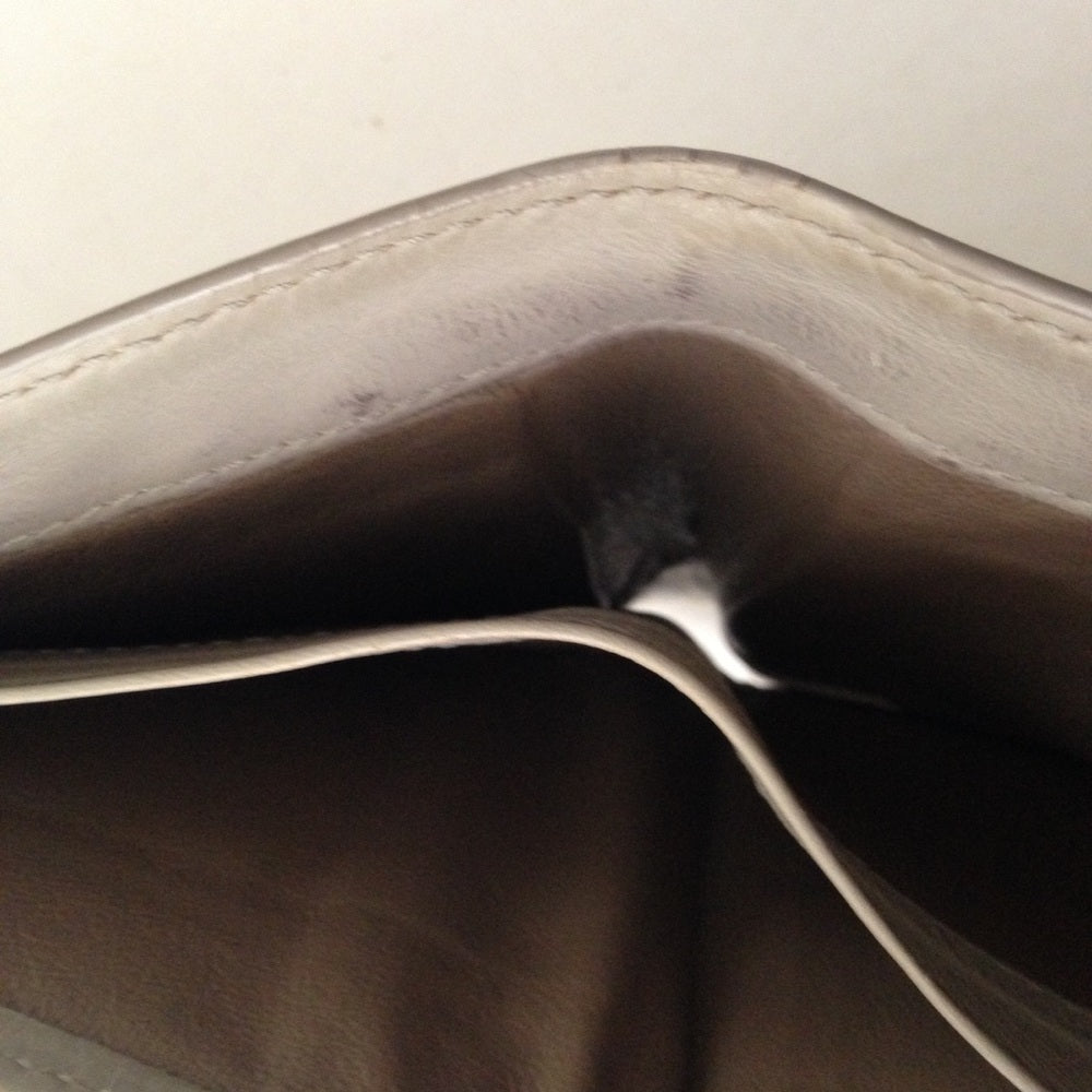 This is a beautiful , pre-owned bi-fold mens wallet made beige leather. This wallet has a slots for bills, IDs and Credit cards and pocket for coins and keys. Folded it measures about 4.5 inches long and 4 inches wide. It is in good condition with minimal wear as shown in photos.