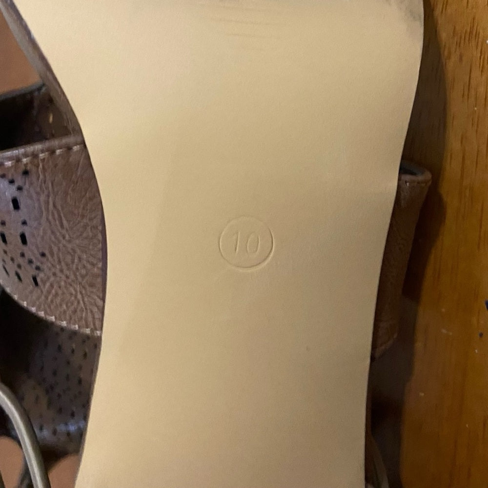 This is a beautiful pair of boots made of brown leather with Peep toes. It is Size 10 and it measures 11 inches long, 3.5 inches wide and 7 inches high. Heels is about 3.5 inches high. It is in very good condition with minimal wear as shown in photos.