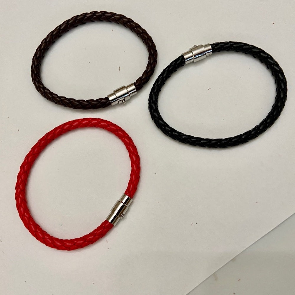 This is a beautiful bracelet made of brown Braided Leather with padlock charm paved with tiny rhinestones. The braided leather bracelet measures 8 inches long and about 1/4 inch in diameter. The padlock charm measures 3/4 inch long and 1/2 inch wide. This will fit wrist measuring up to 8 inches or less and comes with magnetic safety lock. It is in very good condition, New without tag as shown in photos. No makers mark found. The last photo shows 3 different colors available for sale in separate listings.