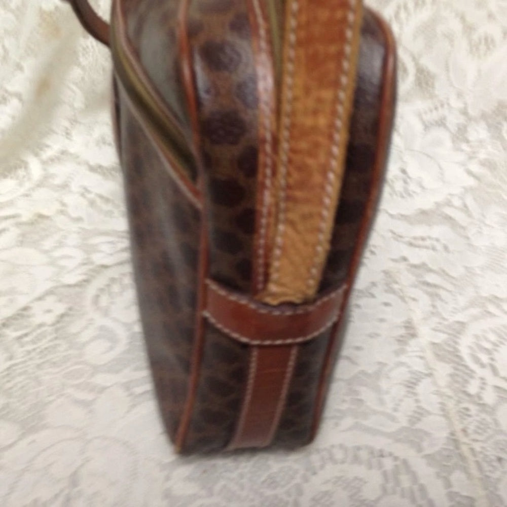 This is a pre-owned, LVs Trocadero style crossbody made of brown macadam coated canvas. It measures 10 inches long, 8 inches high, 2.5 inches wide and comes with a 48-50 inch adjustable crossbody strap. It has metal wear, strap needs work, leather trim discoloration and soiling but overall it is in good condition as shown in the photos. Makers tag is Celine, Paris, Made in Italy. Code: M08. Package weight is about 3 lbs.
