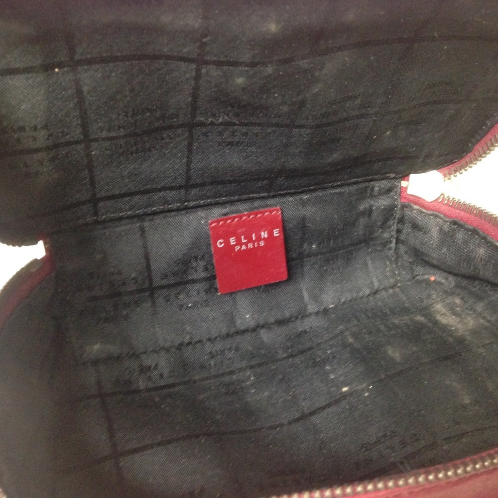 Celine, Burgundy Leather 2-way Cosmetic Pouch-Cro