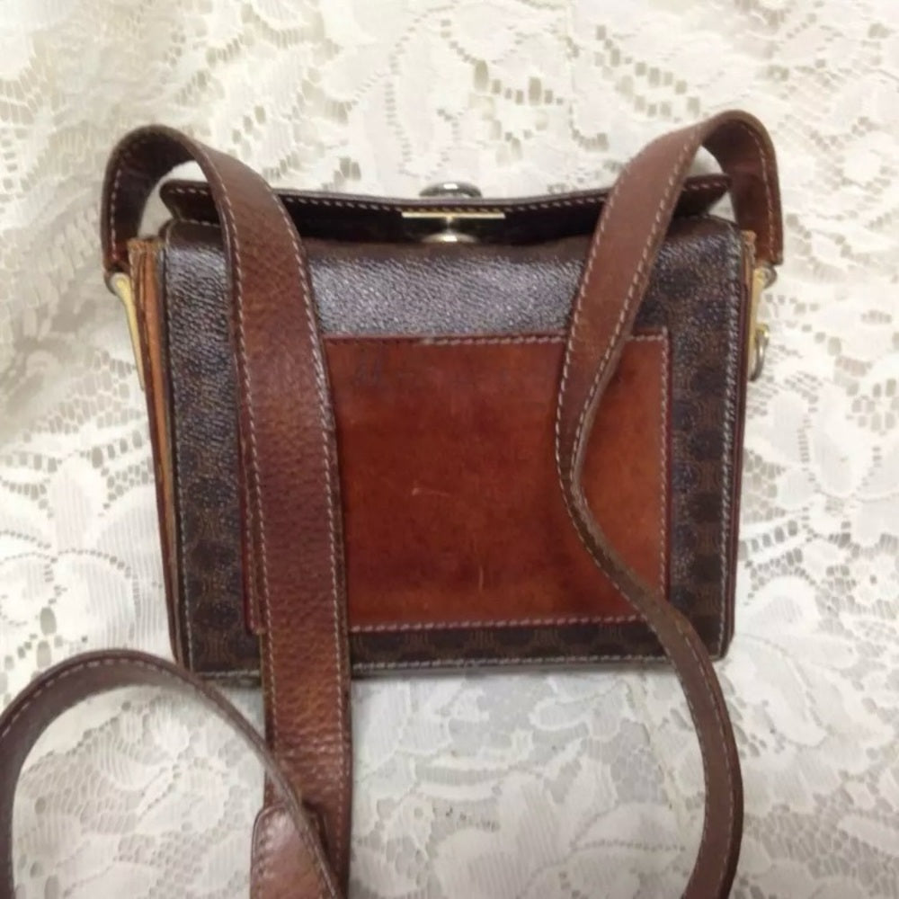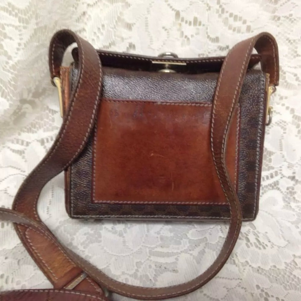 Celine, Square,Boxy Brown Macadam 2-way Mini Purse-Crossbody 6.5in x 5.5in x 2in