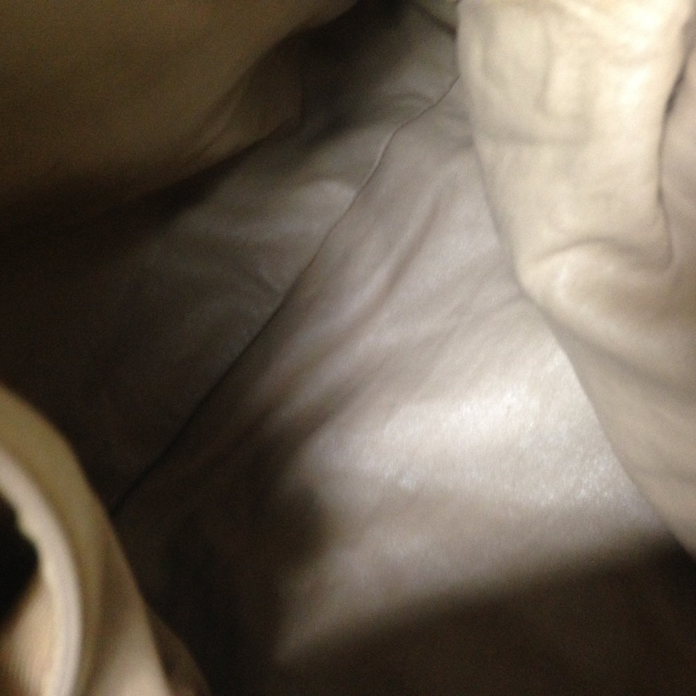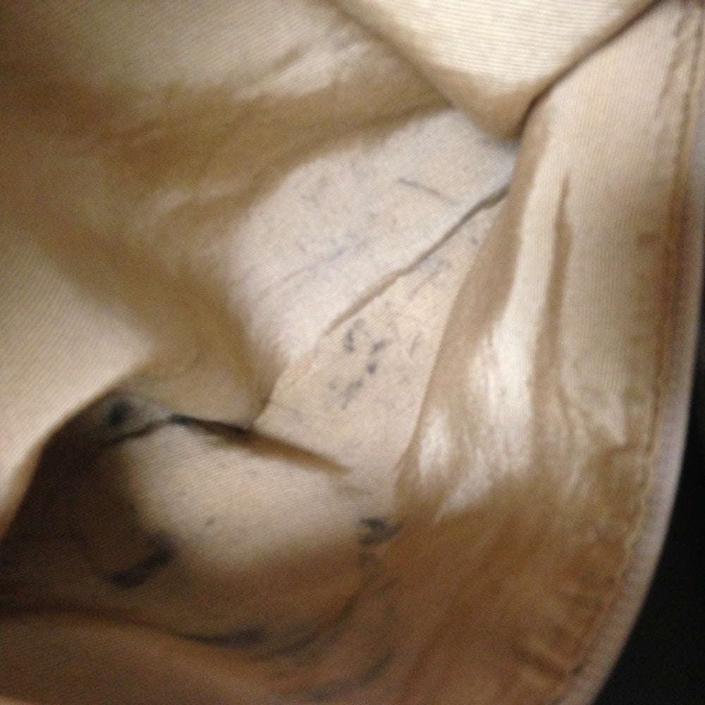 This is a pre-owned business or weekend travel handbag- shoulder bag made of khaki colored suede leather. It measures 16 inches long, 10 inches high and 10 inches wide and comes with a 38-inch crossbody strap. It has soiling, spots, discoloration and ink stain on inner pocket as shown in photos. Dry cleaning or recoloring recommended. It is marked: Chanel with Serial no.5360484 (blurred).