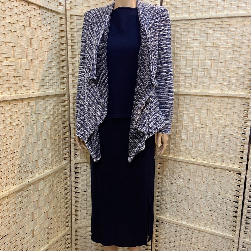 This is a beautiful blue knit cardigan from Chaus NY. It is in good condition with minimal wear as shown in photos. This will fit size: S, actual measurements to follow: