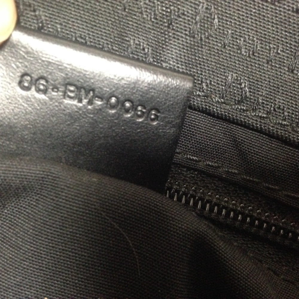 This is a pre-owned, large dark brown with black monogram canvas tote with leather shoulder strap. It measures about 15inches long, 15 inches wide, 4 inches deep and comes with a 16 inch shoulder strap. It is in very good condition with minimal wear as shown in photos. Label reads: Dior, Made in Italy, SN 86 BM0066