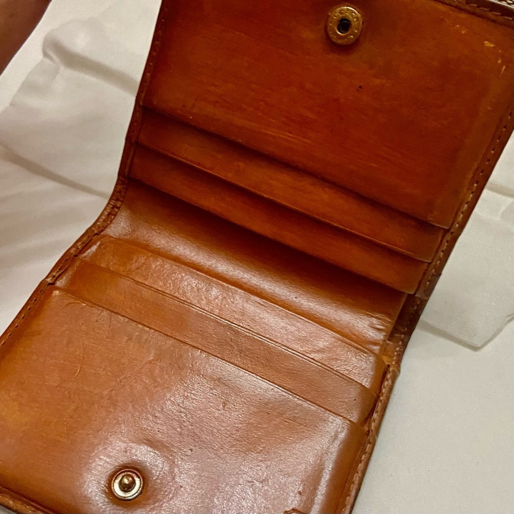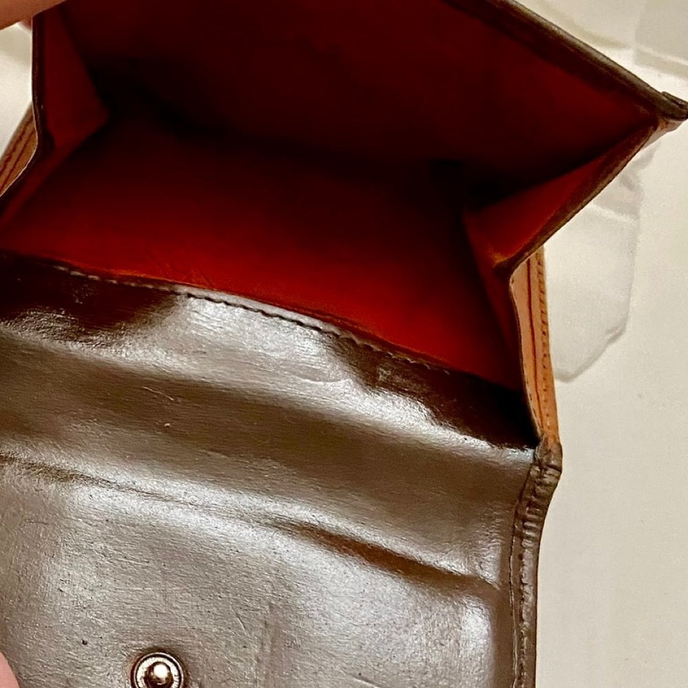 This is a beautiful Bifold compact wallet made of brown monogram coated canvas trim with darker brown leather trim. It measures about 4 inches long and 4 inches wide. This wallet comes with a dust bag and it is in good condition with minimal wear, soiling and staining as shown in photos. Please supersize photos for condition details.