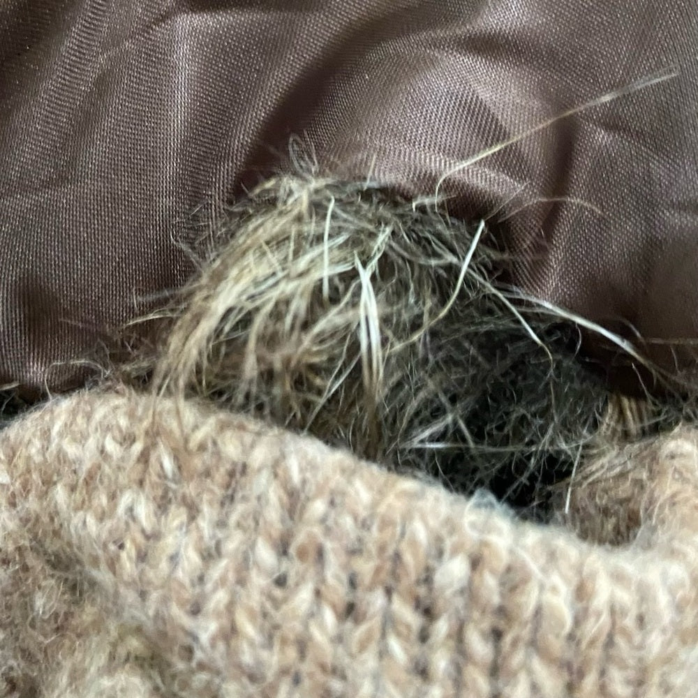 This is a beautiful, pre-owned brown knitted Sweater Cardigan with removable fur collar and zipper closure. It is in good condition as shown in photos. The actual measurements follows: