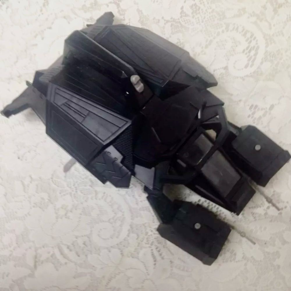 This is a stunning Black Batmobile made of plastic. It measures 14 inches long, 8 inches wide and 6 inches high. It is found to be in good condtion with minimal wear as shown in photos. It is marked: TM D.C. Comics, Mattel. Package weight is about 3 pounds.