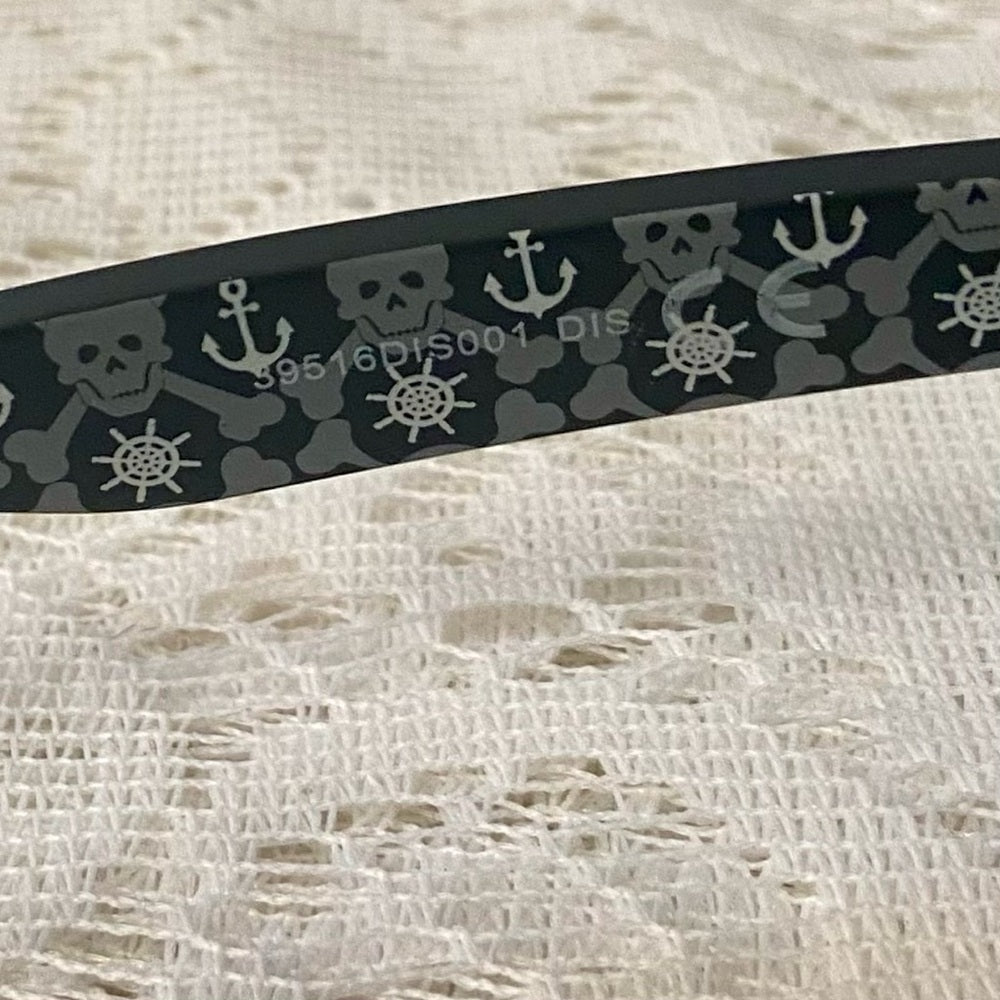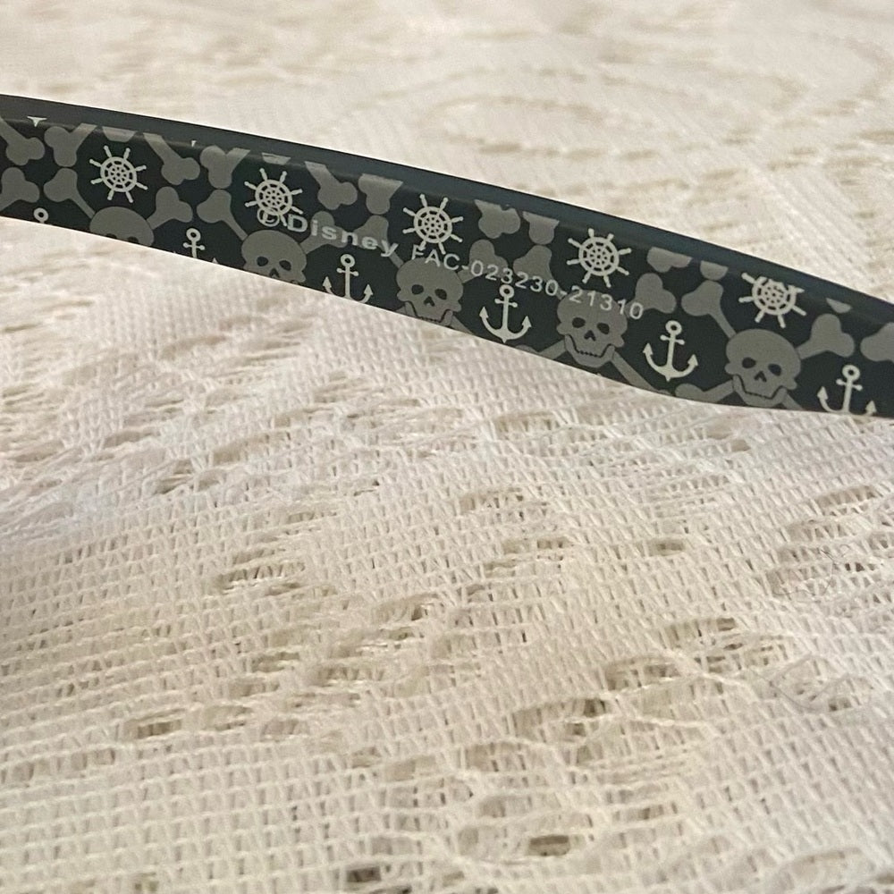 This is a beautiful, adult Disney black sunglasses with mirrored lenses. It measures 5.75 inches long and each lense or frame measures 3 inches long and 2 inches wide. It is in very good condition and comes with a black case as shown in photos. The temples are marked: FAC 023230 21310; 39516 DIS 001 .