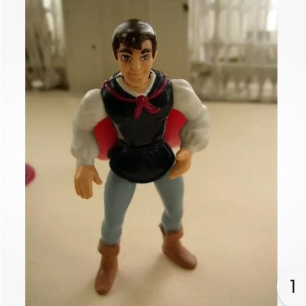 This is a wonderful set of Snow White and the 7 dwarfs including Prince Charming and the Witch. Snow White and Prince Charming measures 3.5 inches tall; the Witch measures 4 inches tall and the 7 dwarfs measures 2.75 -3 inches tall to 5 inches wide with see-saw; wheel barrow, etc. The set is in very good condition as shown in photos and it is marked: © Disney, China.