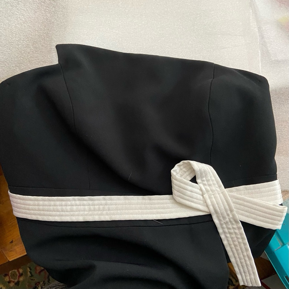This is a beautiful, new without tag black lined, long formal dress decorated with a white bow. It is in very good vintage condition, probably never been used as shown in photos. Actual measurements follows: