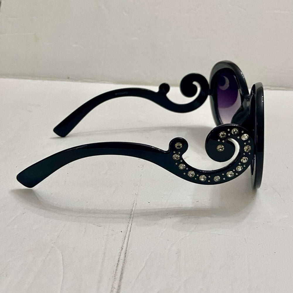 Elegant, High Fashion Black Round Sunglasses with Rhinestones