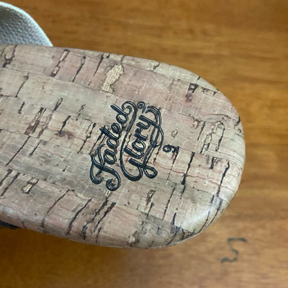 Faded Glory Beige Elastic Canvas High Heel Wedge Sandals Size 9