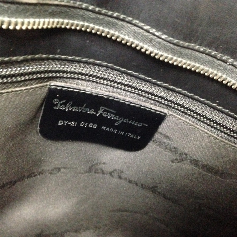 This is a beautiful, pre-owned handbag made of black leather. It measures 13 inches long, 9 inches wide, 4 inches deep and comes with drop handle and 38-inch crossbody strap. It is in good condition with minimal wear such scratches as shown in the photos. It is marked : Salvatore Ferragamo, Dy-21-0166, Made in Italy. The wallet is not included and is shown for size comparison.