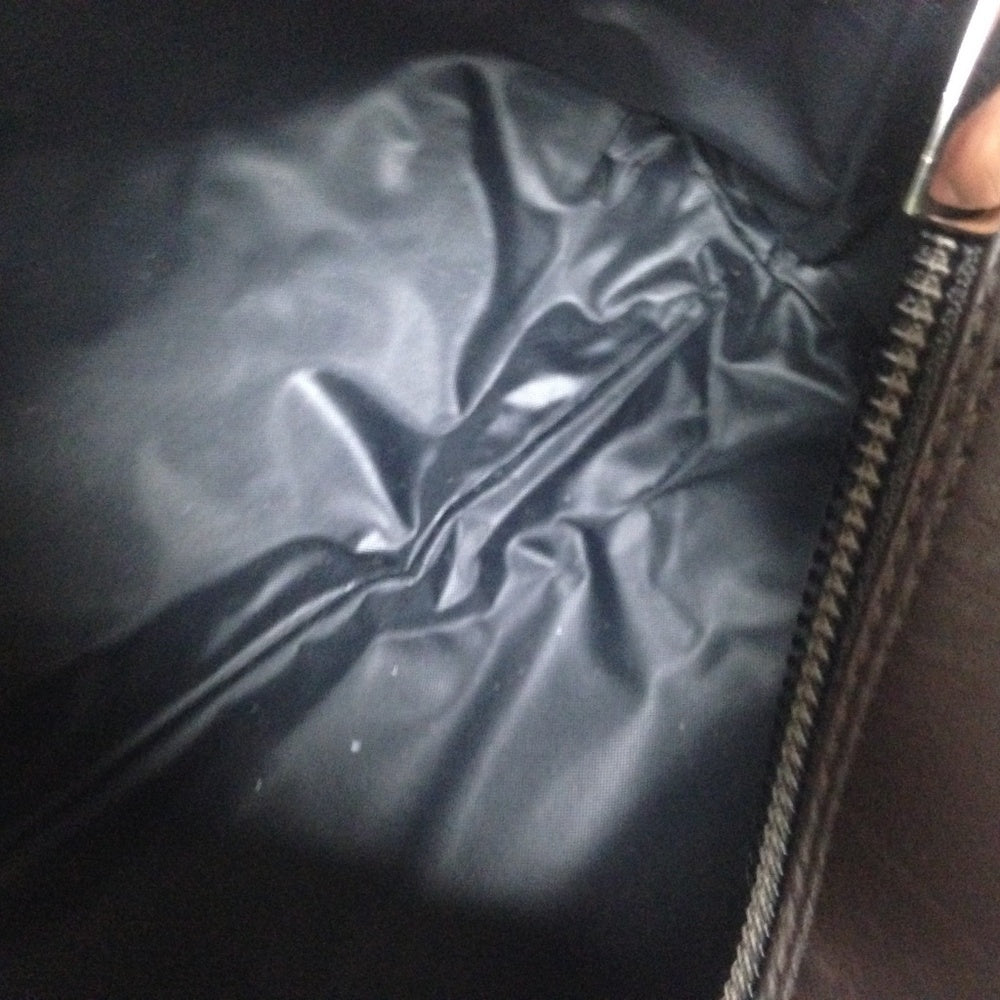 This is a beautiful brown cosmetic pouch made of coated canvas. It measures 8 inches long, 6 inches wide, 2.5 inches deep. It is in very good condition probably never been used as shown in the photos.