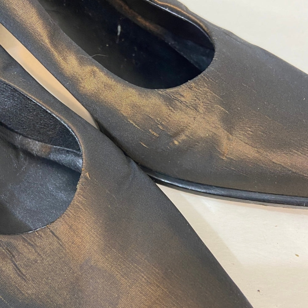 This is a beautiful preowned pair of gold heels. Size 8, measures 10 inches long, 3.5 inches wide, and 3 inches high. It is in good condition with some wear as shown in photos. It is marked Franco Sarto.