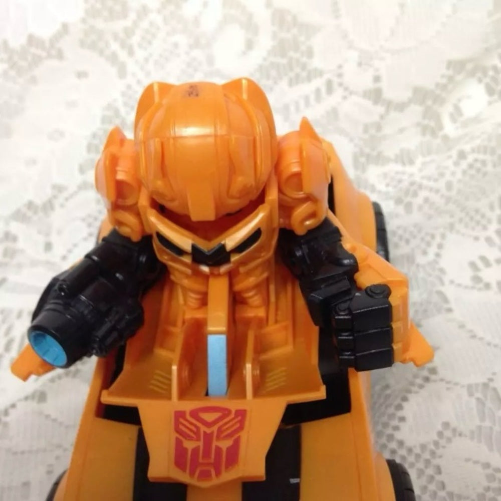 This listing is for 2008 Hasbro, yellow and black Tomy Robot Transformer. It measures 6 inches long, 3.5 inches wide and 3 inches high. It has a transformer symbol on it as shown in photos.