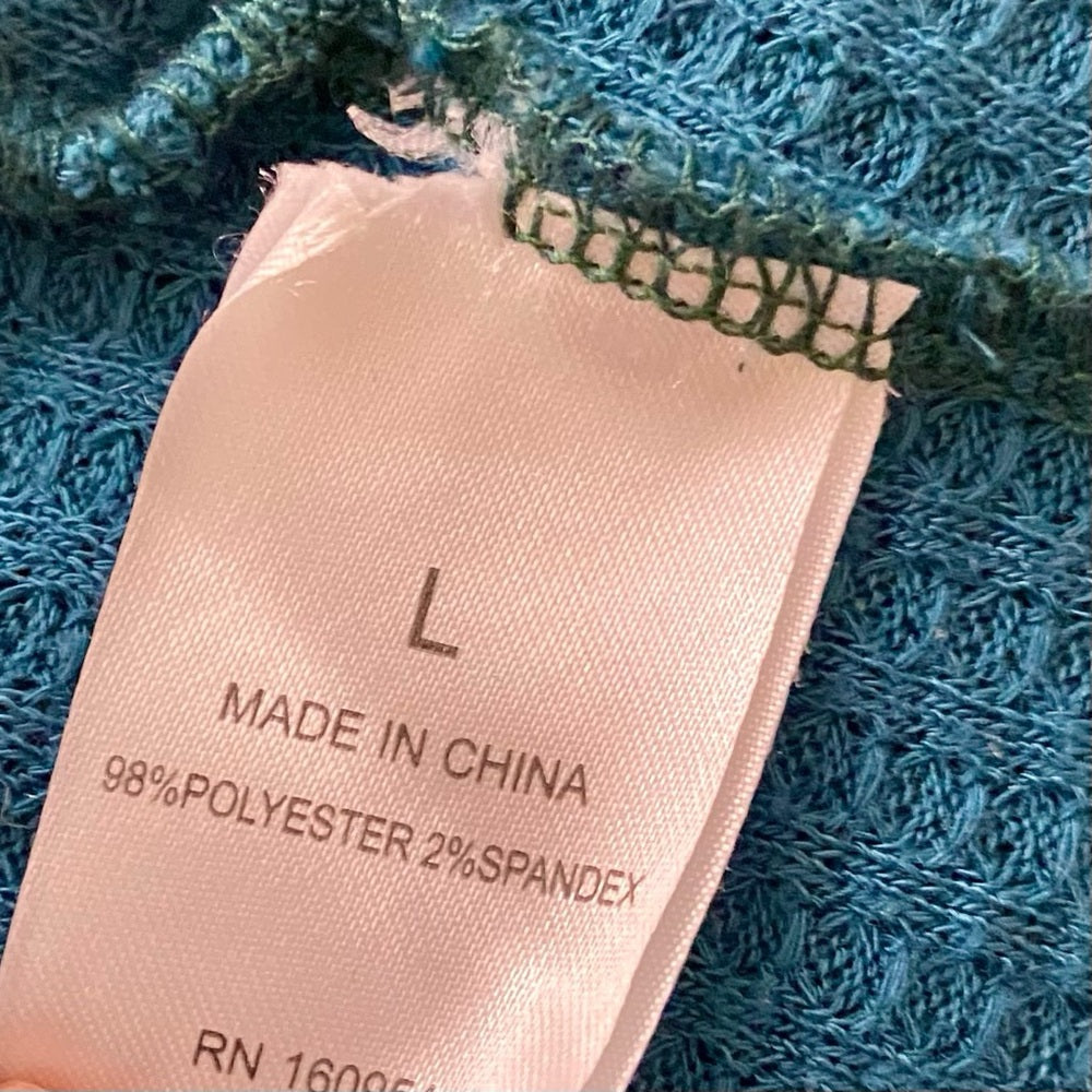 Jack & Avery Teal Blue Knotted Top- Sweater-Cardigan (L) (E1024)