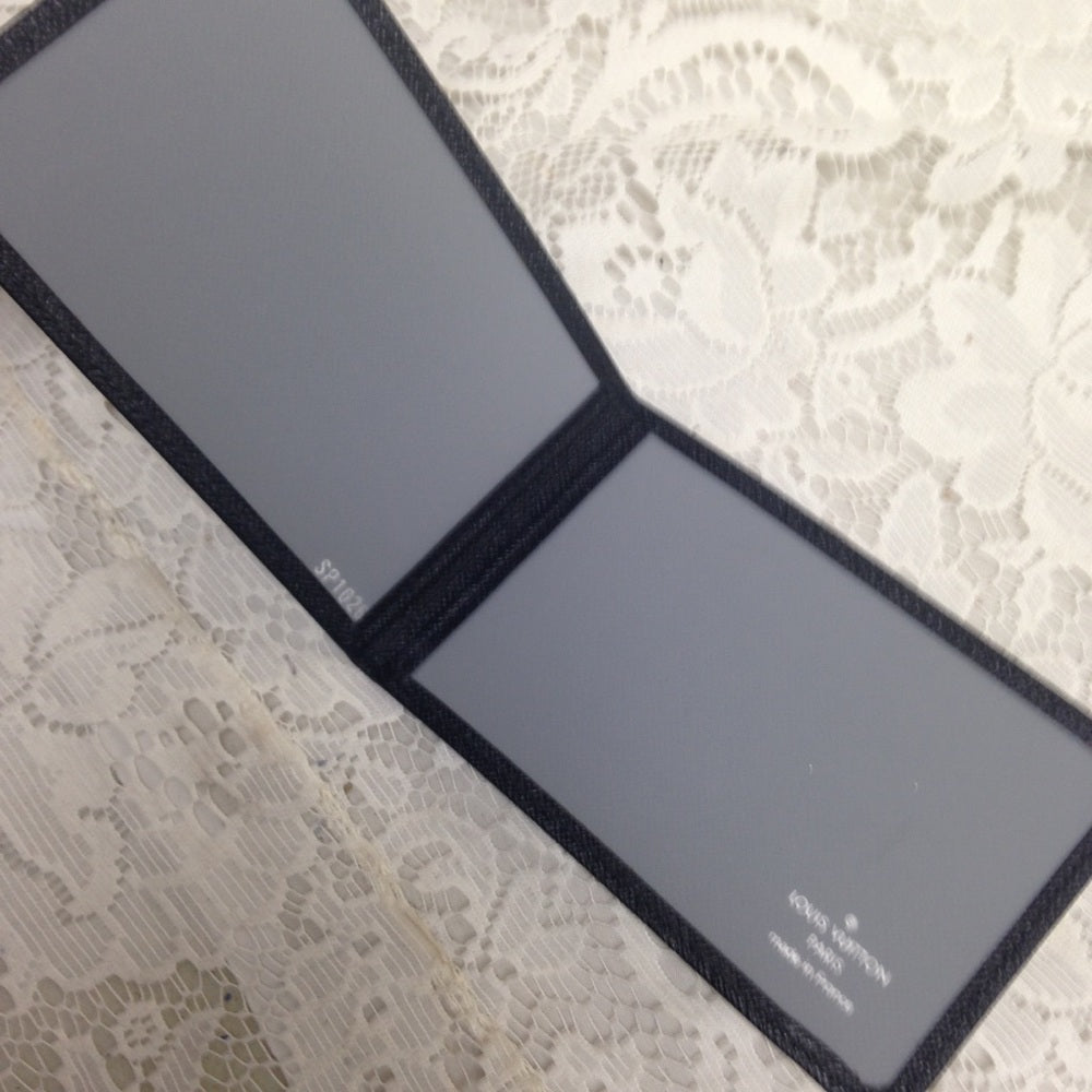 This is a new without tag or unused black Taiga leather ID-Credit Card Case. Folded it measures about 5 inches long and 3.5 inches wide. Spreadout it measures 10 inches long and 3.5 inches wide. It is in good condition with minimal wear as shown in photos. It is marked: Louis Vuitton, Made in France with date code SP1026 - Made in France, December 2006.