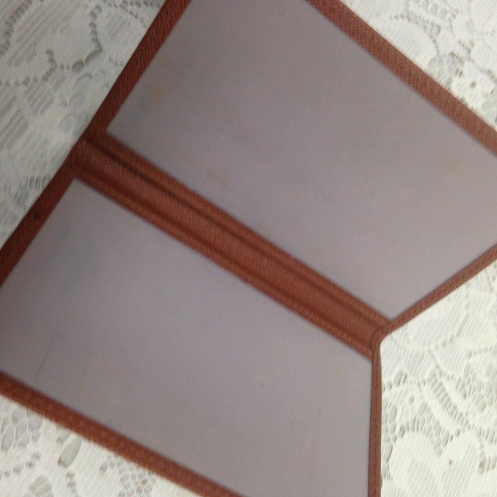 This is a new without tag or unused brown Taiga leather ID-Credit Card Case. Folded it measures about 5.5 inches long and 3.5 inches wide. Spreadout it measures 7 inches long and 3.5 inches wide. It is in good condition with minimal wear as shown in photos. It is marked: Louis Vuitton, Made in France with date code SP0929- February 1999.