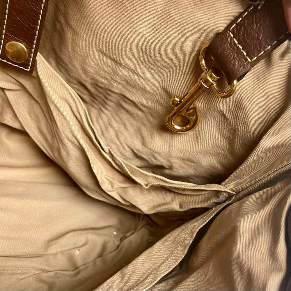 Lands End Large, Gold Woven Leather Tote Handbag 12in x 12in x 5.5in