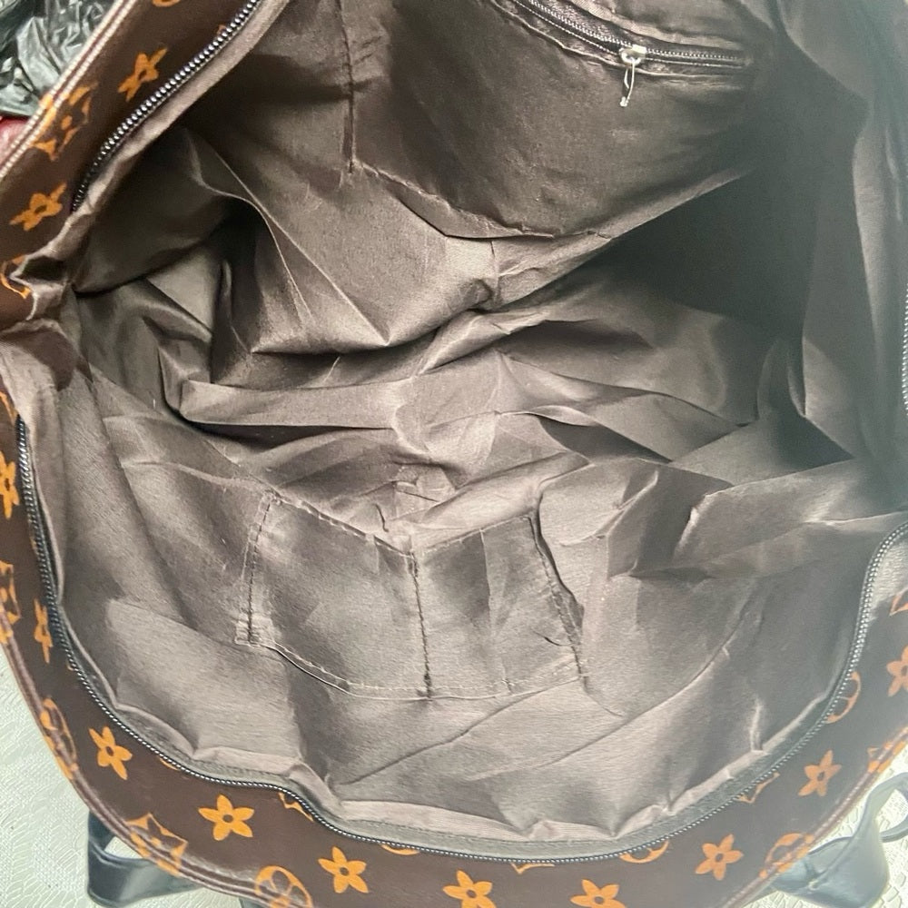 Large, Brown Floral Soft Nylon Faux Leather Tote -handbag (L0825)